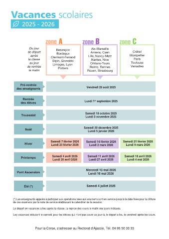 Le départ en vacances a lieu après la classe, la reprise des cours le matin des jours indiqués.Le départ en vacances a lieu après la classe, la reprise des cours le matin des jours indiqués.